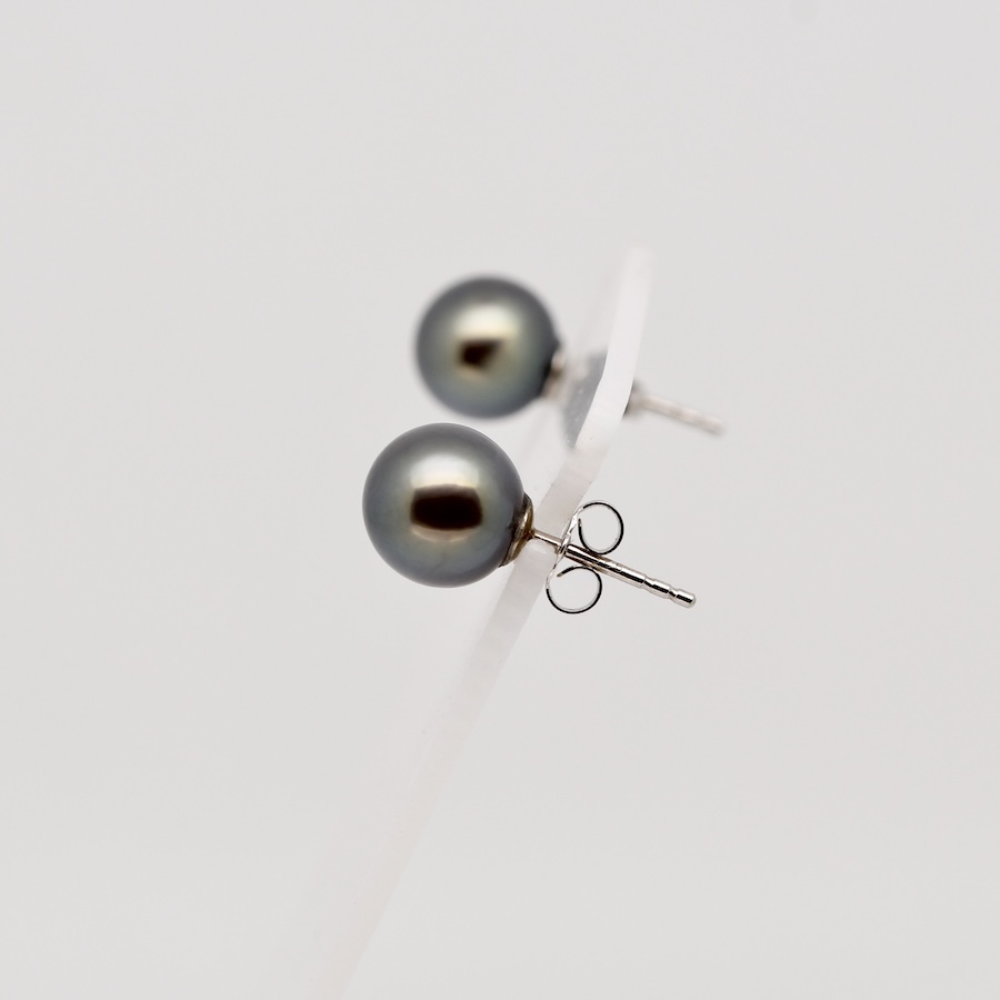 La qualité A assure une surface très propre, avec très peu d’imperfections visibles à l’œil nu, mais surtout un lustre excellent, homogène sur les deux perles. Le lustre est l’un des critères fondamentaux d’évaluation d’une perle de Tahiti. Il détermine la capacité de la perle à réfléchir la lumière et à produire cette profondeur si caractéristique, presque vivante. Sur la paire Rimatara, le lustre est vif, net et parfaitement équilibré entre les deux perles, ce qui est indispensable pour un bijou d’oreilles de ce niveau.