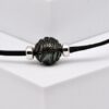 Gravée ensuite pour révéler son caractère, encadrée d’argent, montée sur cuir noir.