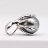 Ce pendentif en argent 925 rhodié, travaillé avec finesse, figure une pieuvre stylisée dont les tentacules élégantes enlacent une perle de Tahiti ronde de 9,5 mm. L’argent poli capte la lumière, mettant en valeur le lustre excellent de la perle, tandis que le rhodiage assure une brillance durable et protège la monture contre l’oxydation.