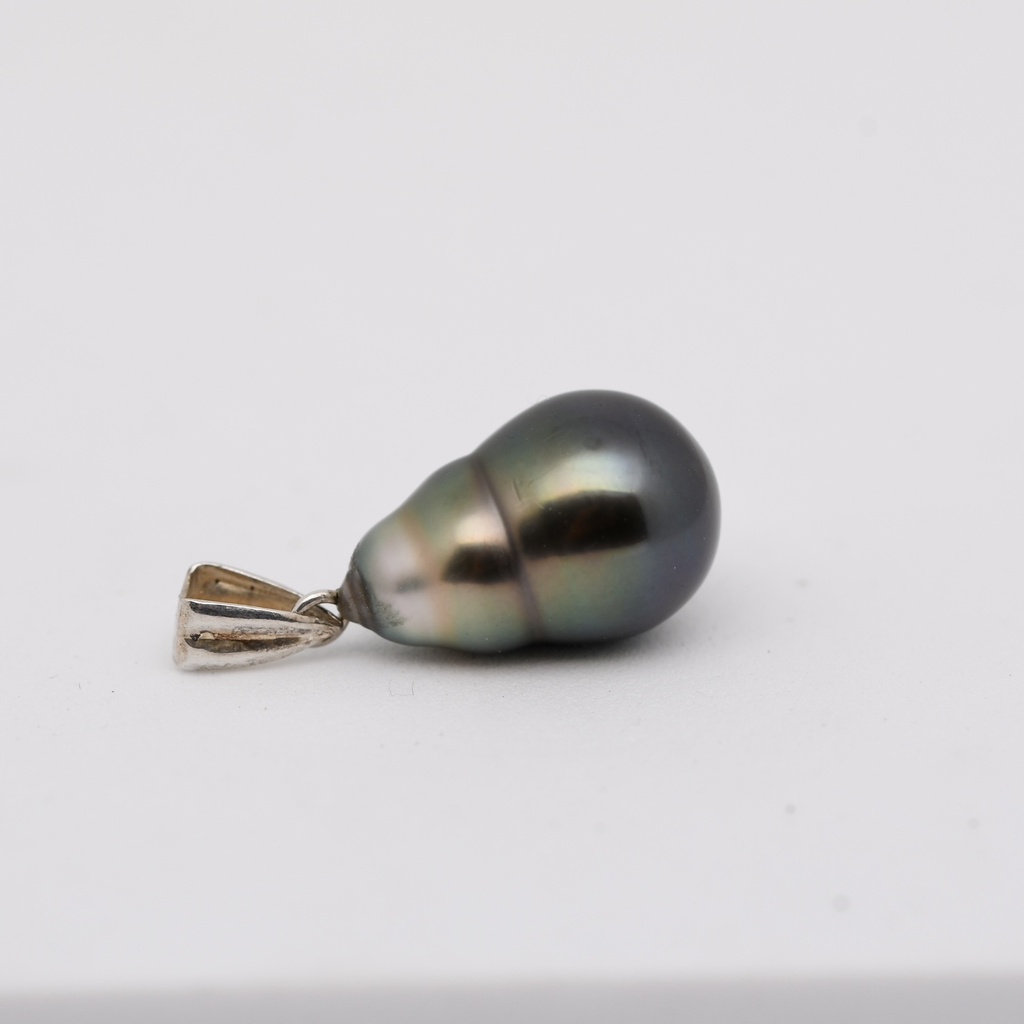 Perle : Perle de Tahiti cerclée en forme de poire, diamètre 9,4 mm
