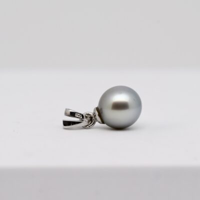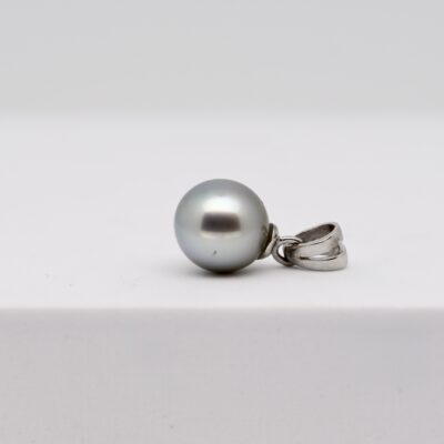 La monture du pendentif Averii a été pensée pour sublimer cette beauté naturelle. Sa bélière articulée en argent 925 rhodié allie sobriété et solidité. Le rhodium, métal rare et précieux, confère à l’argent une brillance durable tout en le protégeant de l’oxydation. Cette monture met en valeur la perle sans la contraindre, laissant à la nacre toute liberté d’exprimer sa lumière intérieure.