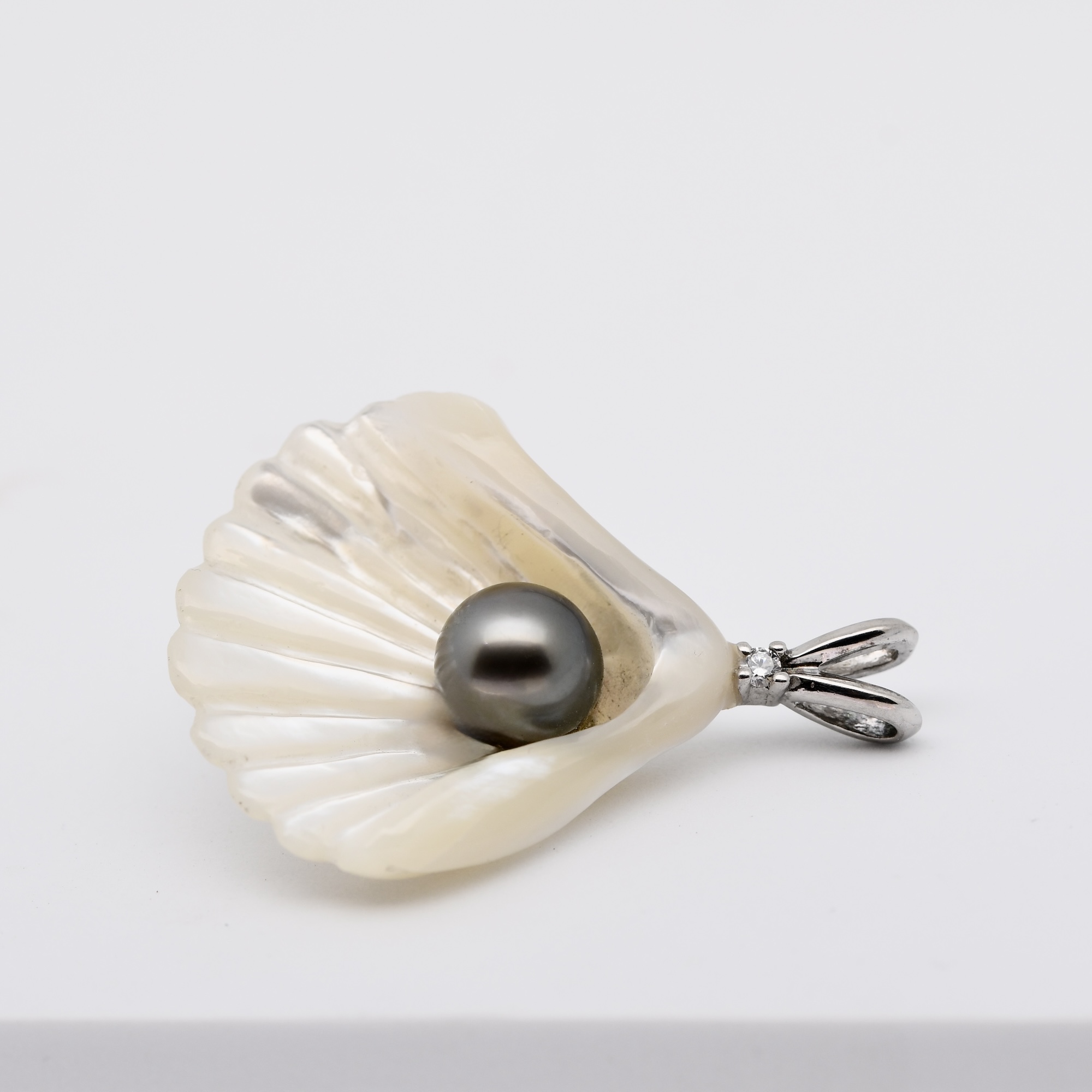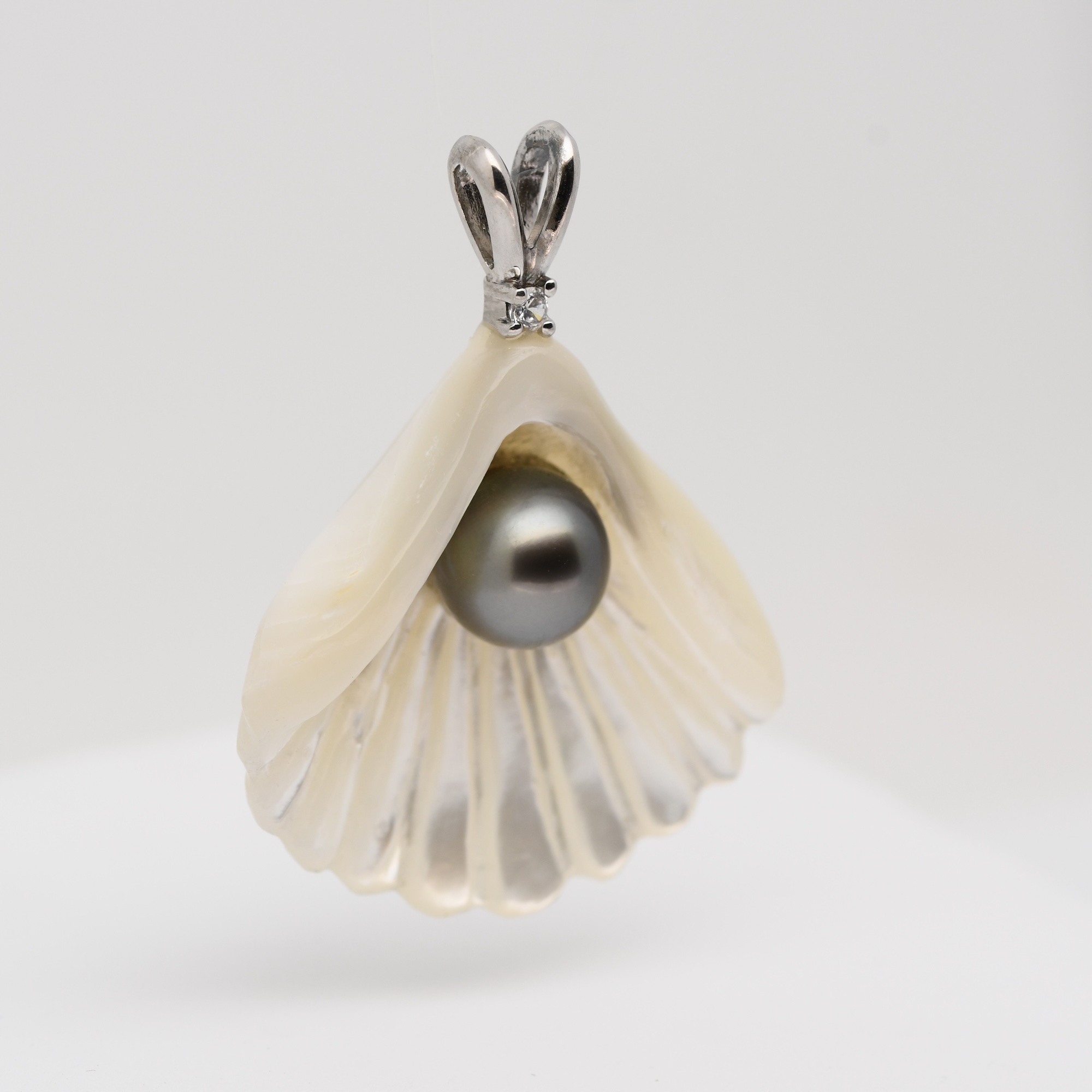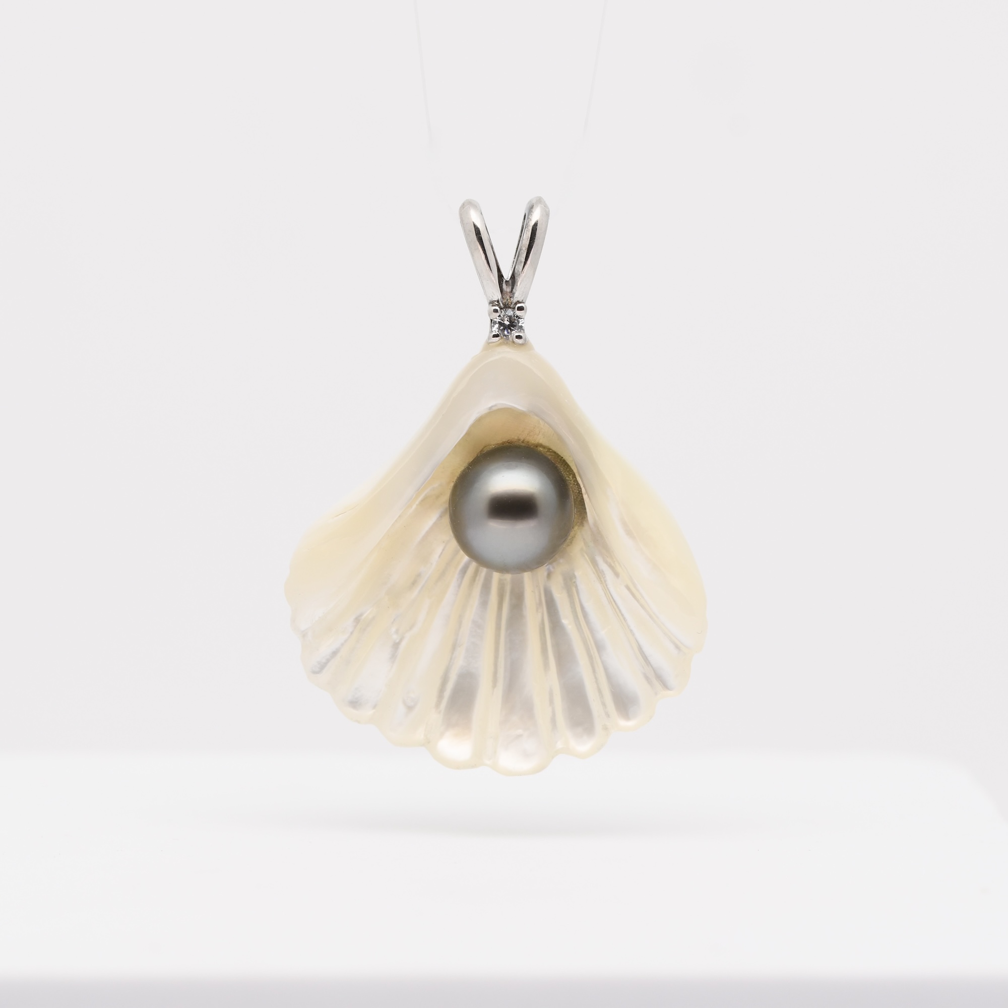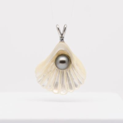 Né du lagon de Manihi, le pendentif Pupu unit la nacre et la perle dans une même harmonie.
