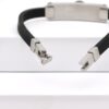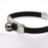 Montage : Bracelet articulé en néoprène noir avec plaque en acier brossé décorée de motifs polynésiens noirs